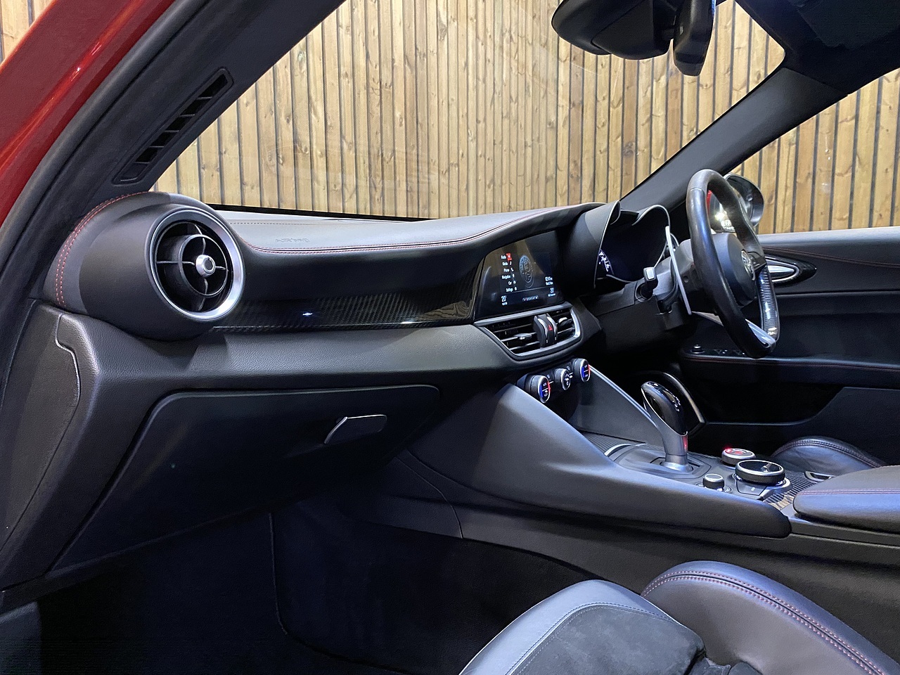 With only 30,751 miles on the clock and just two previous owners, this 2017 Alfa Romeo Giulia V6 Bi Turbo Quadrifoglio presents a remarkable find. This Euro 6 compliant 2.9 litre petrol model boasts a clear vehicle history check and an MOT valid until August 2026, offering peace of mind. It comes equipped with stylish 19 inch dark aluminium Quadrifoglio alloy wheels, a convenience pack featuring keyless entry, and advanced safety aids including blind spot monitoring with assistance and front and rear parking sensors. Inside, you'll find the Alfa Connect 3D Nav 8.8 inch infotainment system, complete with Bluetooth connectivity.